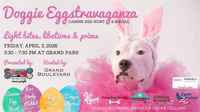 Dog-Harmony proudly presents the 11th Annual Doggie EGGstravaganza, a canine-only Easter egg hunt and social, on Friday, April 3, 2026, from 5:30 to 7:30 p.m. at Grand Boulevard at Sandestin.